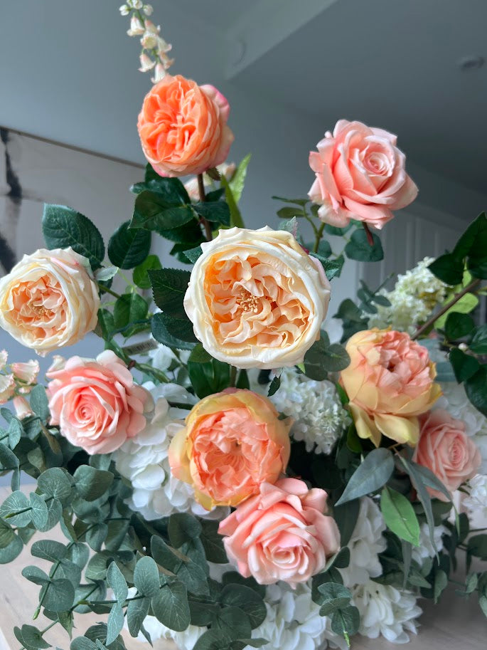 We offer custom floral designs tailored exclusively to your event, perfect for statement installations, personalized color palettes, and one-of-a-kind arrangements using premium real-touch and silk florals.